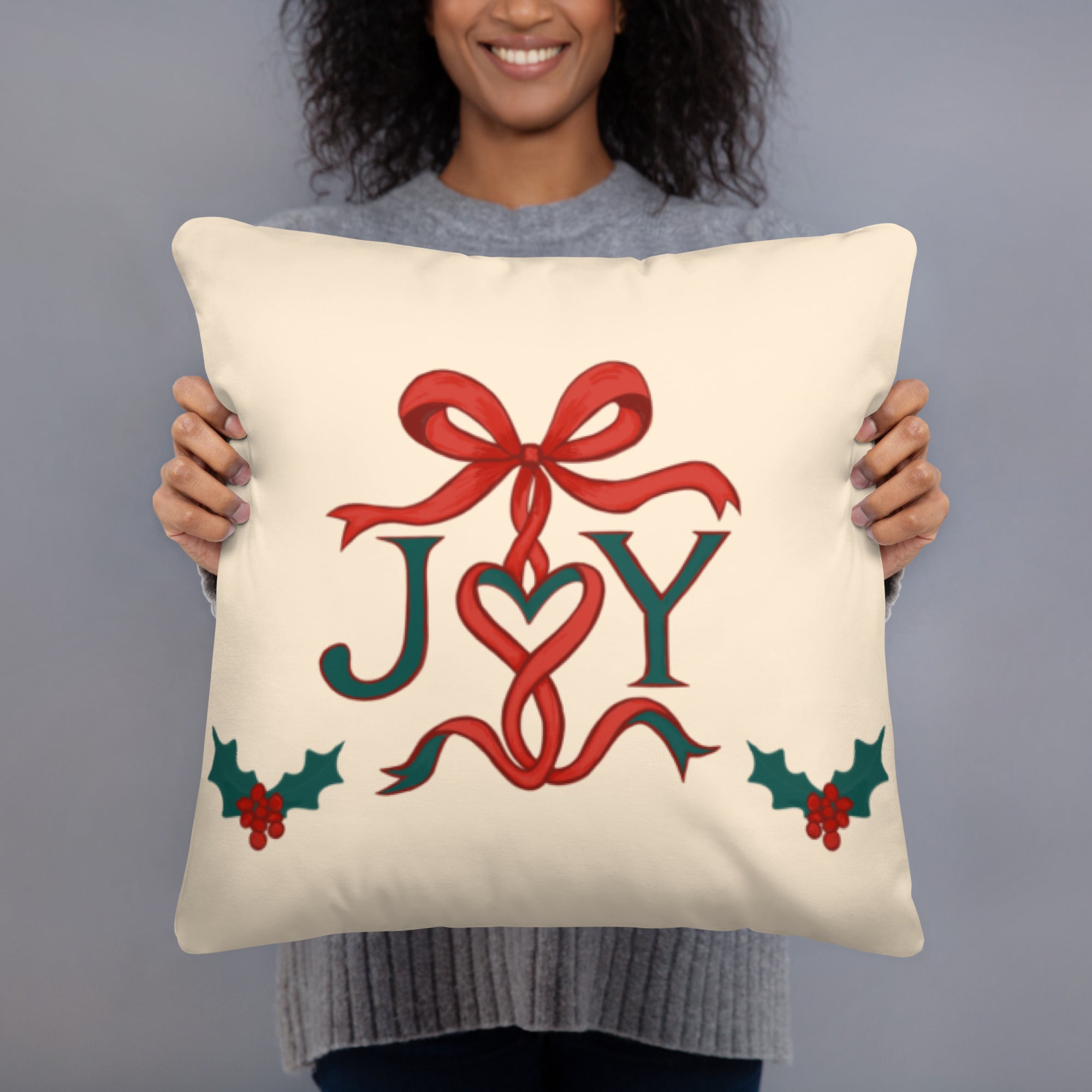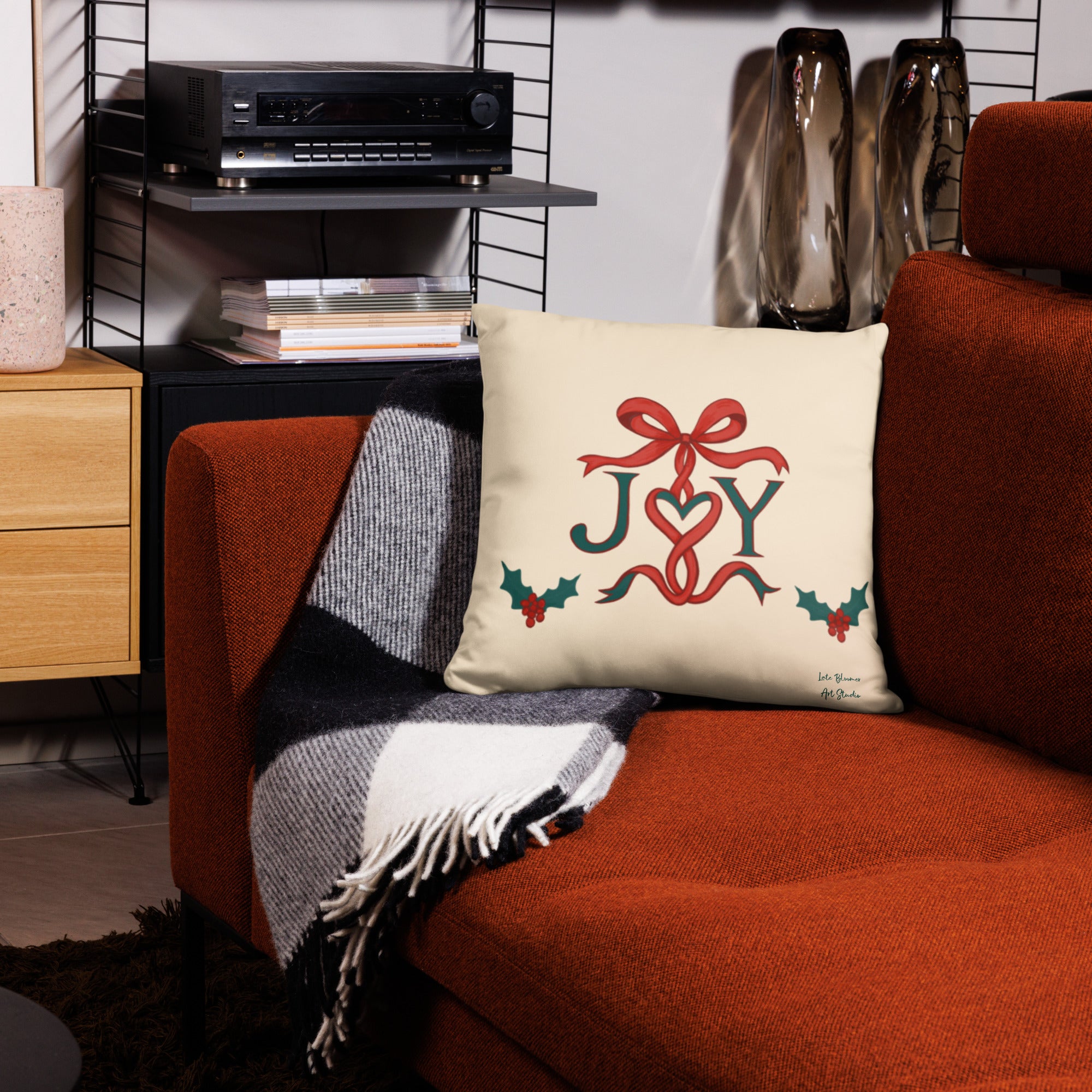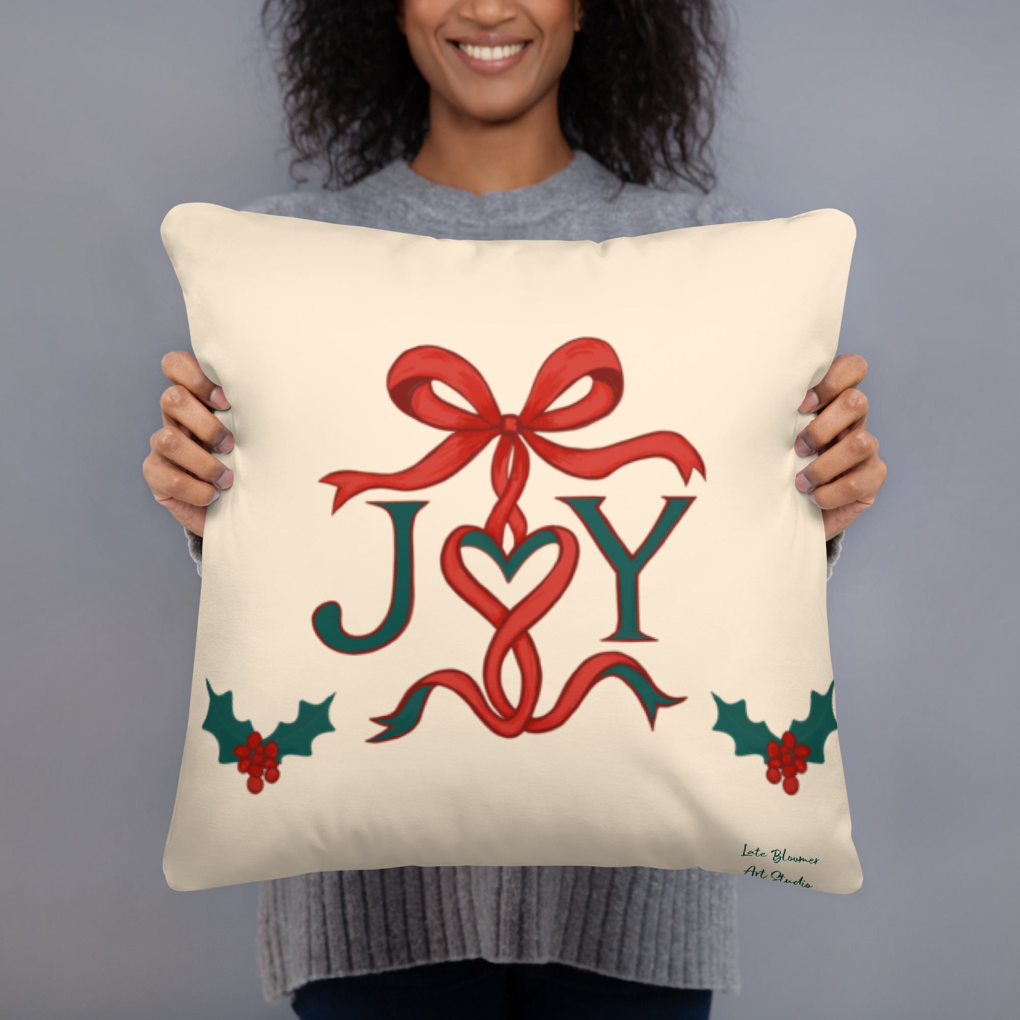 Bring a touch of heartfelt festive charm into your home with this beautifully illustrated Joy Ribbon pillow, designed by Late Bloomer Art Studio. Warm, elegant, and full of Christmas cheer, this piece features a painterly red ribbon forming the word JOY, accented with holly sprigs and set against a soft neutral background that complements any cozy holiday space.